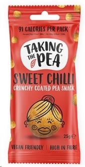 Taking The Pea is a range of delicious, crunchy coated peas with crisp inspired flavours: Cheesy & Onion, Sweet Chilli, Smoked Ham and of course, the flavour that peas couldn’t be without Wasabi! Made with British grown marrowfat peas and flavoured with natural ingredients, free from GMOs and artificial additives, these snacks are high in fibre, less than 100kcal per 25g pack and a great source of plant protein. They have more protein than crisps and popcorn and less fat than nuts. All four flavours are vegan-friendly. Taking the Pea is a brand with a cheeky, fun personality and a tasty, convenient, yet nutritious product. So, what are you waiting for? It's time to take a chance on pea! Allergen statement: Our peas are packed in a facility that handles peanuts, nuts, mustard, sesame and gluten.