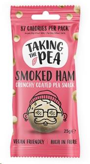 Taking The Pea is a range of delicious, crunchy coated peas with crisp inspired flavours: Cheesy & Onion, Sweet Chilli, Smoked Ham – and of course, the flavour that peas couldn’t be without – Wasabi! Made with British grown marrowfat peas and flavoured with natural ingredients, free from GMOs and artificial additives, these snacks are high in fibre, less than 100kcal per 25g pack and a great source of plant protein. They have more protein than crisps and popcorn and less fat than nuts. All four flavours are vegan-friendly. Taking the Pea is a brand with a cheeky, fun personality and a tasty, convenient, yet nutritious product. So, what are you waiting for? It's time to take a chance on pea! Allergen statement: Our peas are packed in a facility that handles peanuts, nuts, mustard, sesame and gluten.